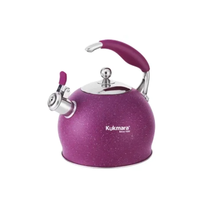 Корпус чайника выполнен из нержавеющей стали AISI 304, которая отличается коррозионной стойкостью и гигиеничностью. Толщина стенок составляет 0,5 мм. Конструкция включает трёхслойное капсулированное дно для эффективного распределения тепла, фиксированную ручку с силиконовой накладкой для безопасного захвата и свисток с клапаном, который подаёт звуковой сигнал при закипании воды.