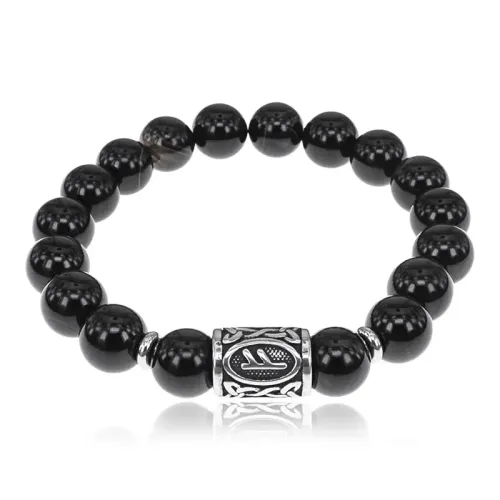 Стрейч-браслет ручной работы из натурального камня и рунических бусин из нержавеющей стали.