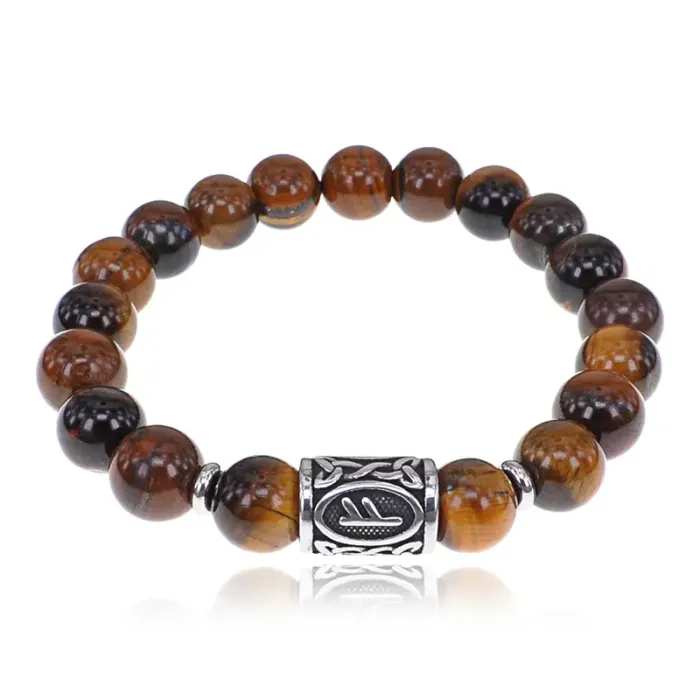 Стрейч-браслет ручной работы из натурального камня и рунических бусин из нержавеющей стали.