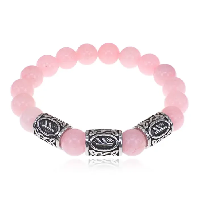 Стрейч-браслет ручной работы из черного агата и бусин из нержавеющей стали с руническим дизайном.