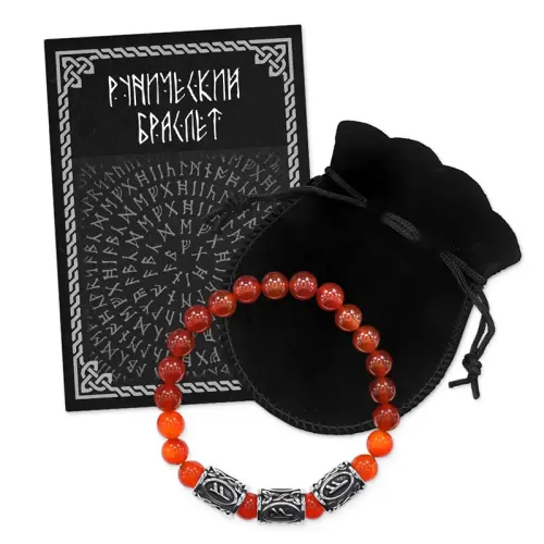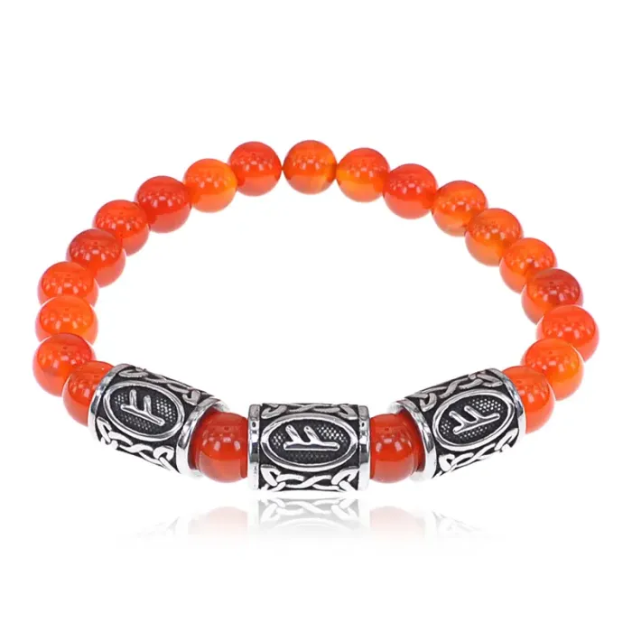 Стрейч-браслет ручной работы из сердолика и бусин из нержавеющей стали с руническим дизайном.