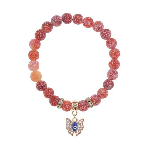 Браслет из натурального африканского агата с подвеской в виде бабочки.
