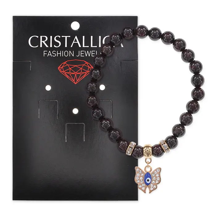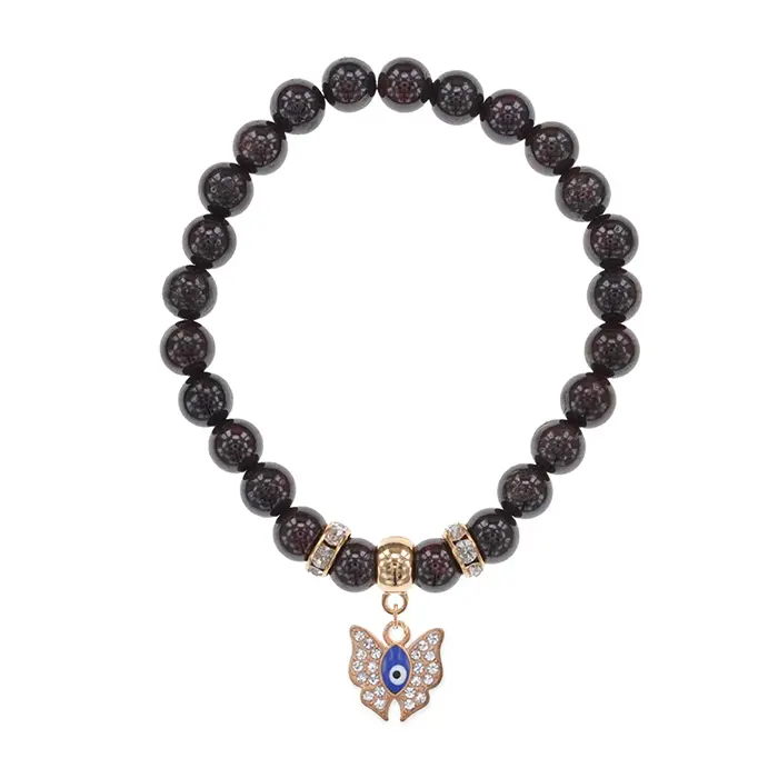 Стрейч-браслет из натурального граната с фурнитурой в виде бабочки.