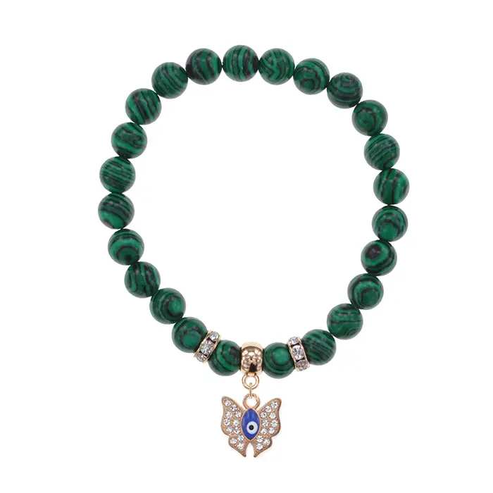 Браслет Бабочка (Свобода и Счастье) синт.камень Малахит 8мм BS-CR-0162