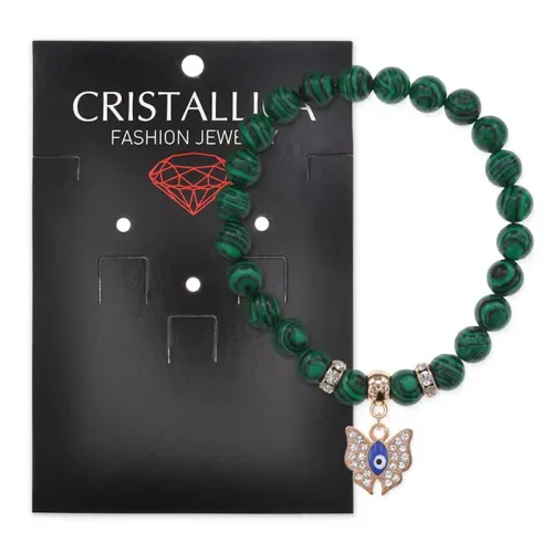 Стрейч-браслет коллекции Cristallica, украшенный стразами. Выполнен из синтетического камня малахит.