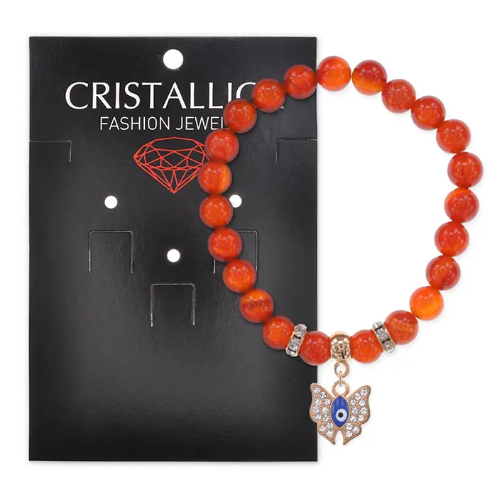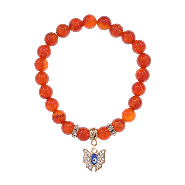 Стрейч-браслет из натурального сердолика с подвеской в виде бабочки.