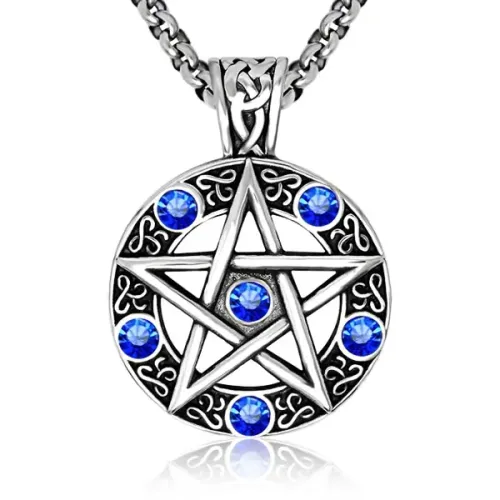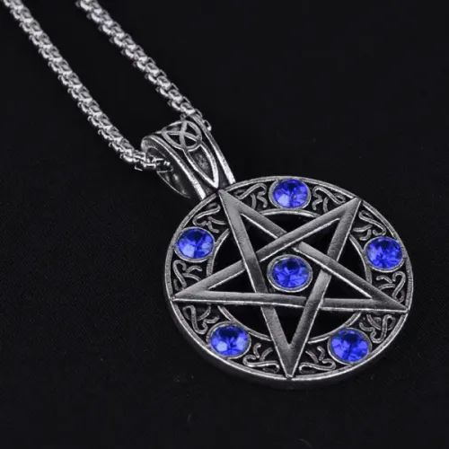 Амулет в виде звезды из нержавеющей стали с декоративными стразами.