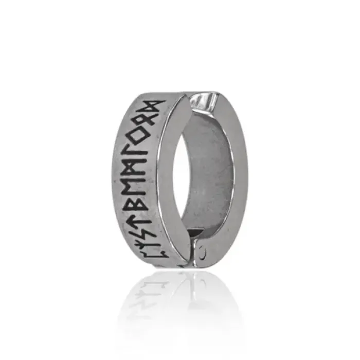 Серьга сувенирная из нержавеющей стали с руническим дизайном.