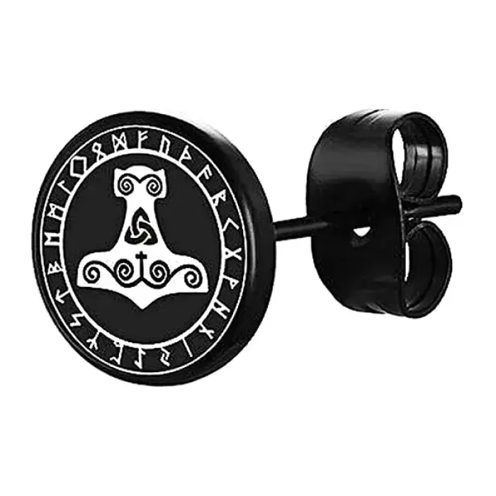 Серьга-гвоздик с символом Молота Тора из нержавеющей стали.