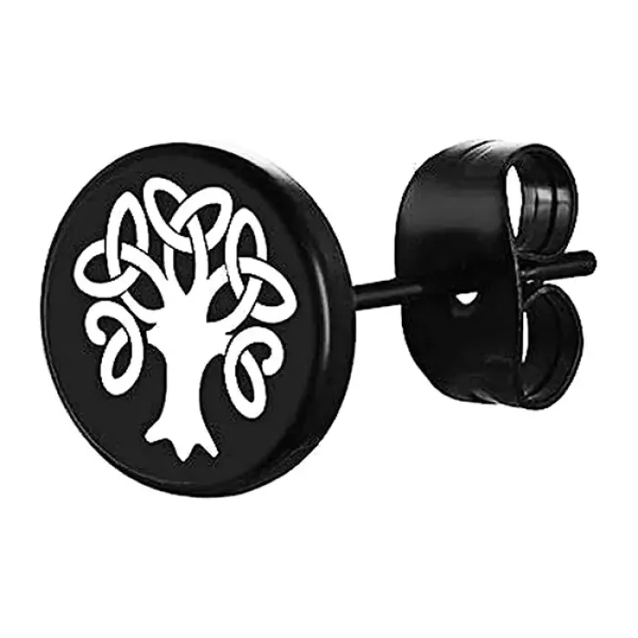 Серьга-пусет из нержавеющей стали с дизайном в виде символа Иггдрасиль (Дерево Жизни).