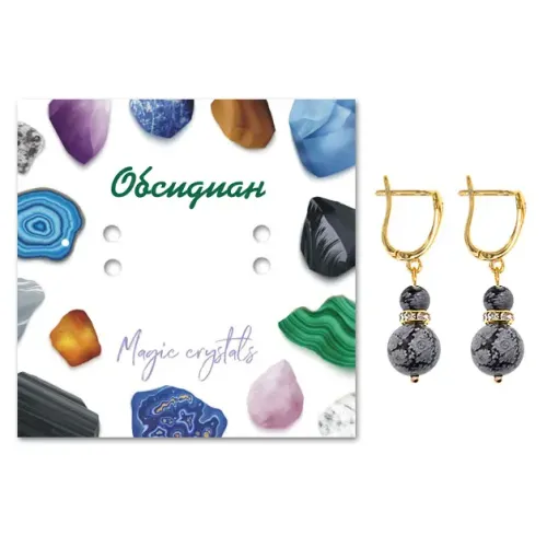 Материал и изготовление: Натуральный снежный обсидиан, бижутерный сплав с покрытием под золото.