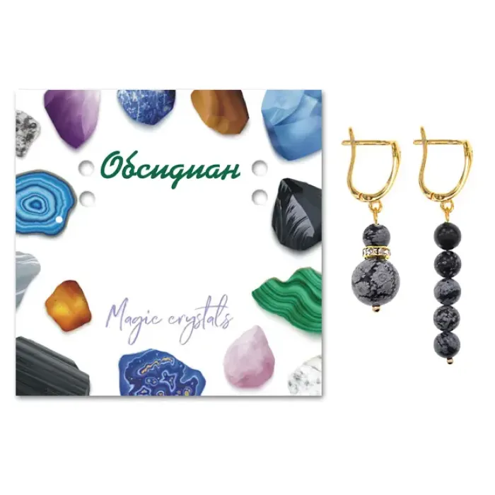 Материал и изготовление: Натуральный снежный обсидиан, бижутерный сплав с покрытием под золото, корейская фурнитура. Изделие ручной работы.