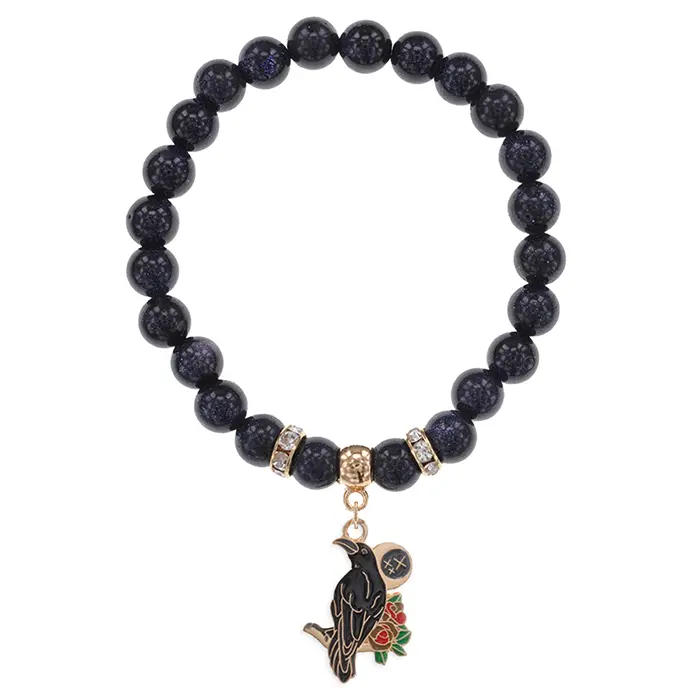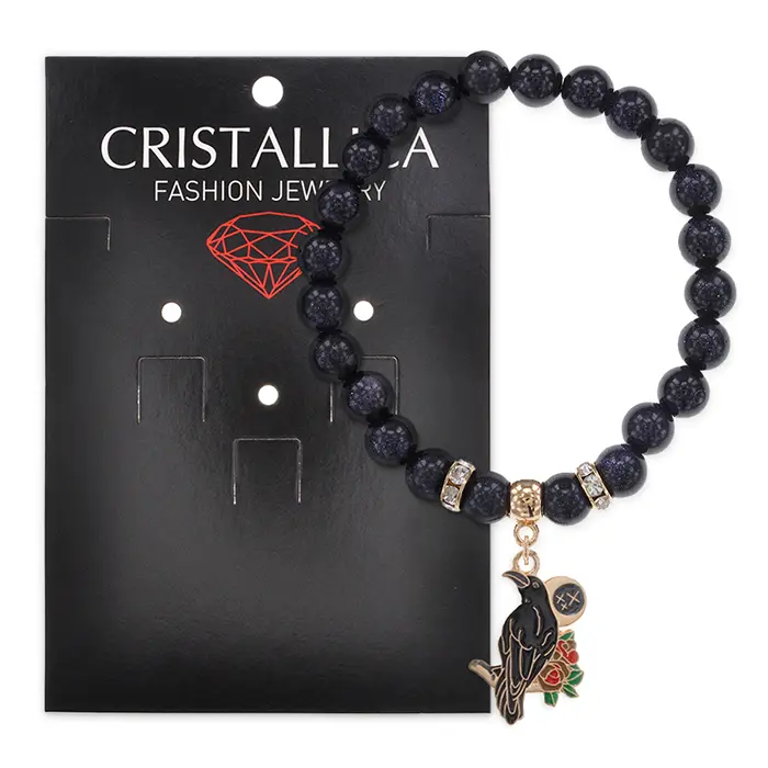 Браслет Ворон (интеллект и мудрость) синт.камень Синий авантюрин 8мм BS-CR-0182