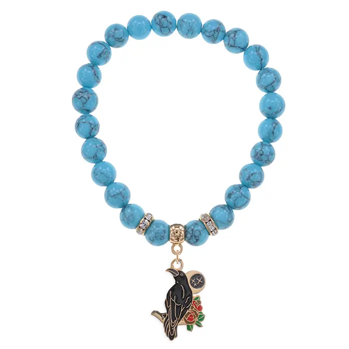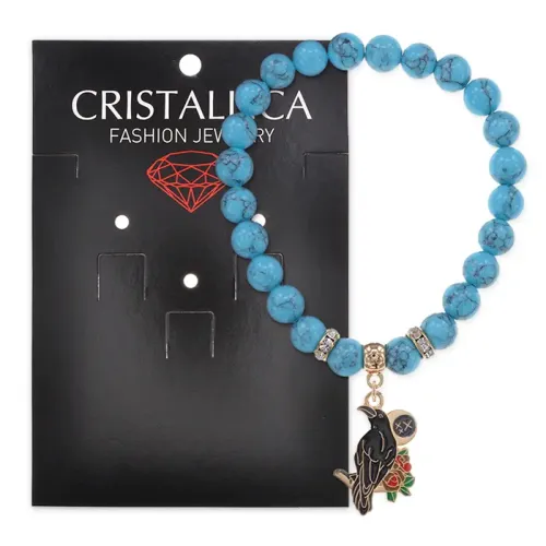 Браслет Ворон (интеллект и мудрость) синт.камень Бирюза 8мм BS-CR-0185