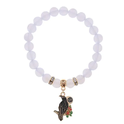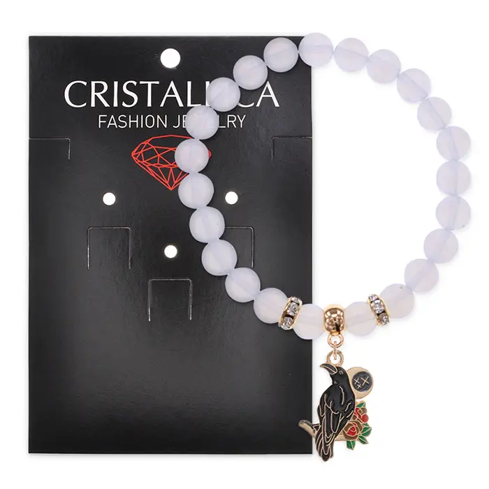 Браслет Ворон (интеллект и мудрость) синт.камень Лунный камень 8мм BS-CR-0191