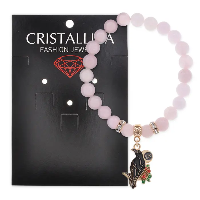 Браслет Ворон (интеллект и мудрость) нат.камень Розовый кварц 8мм BS-CR-0195