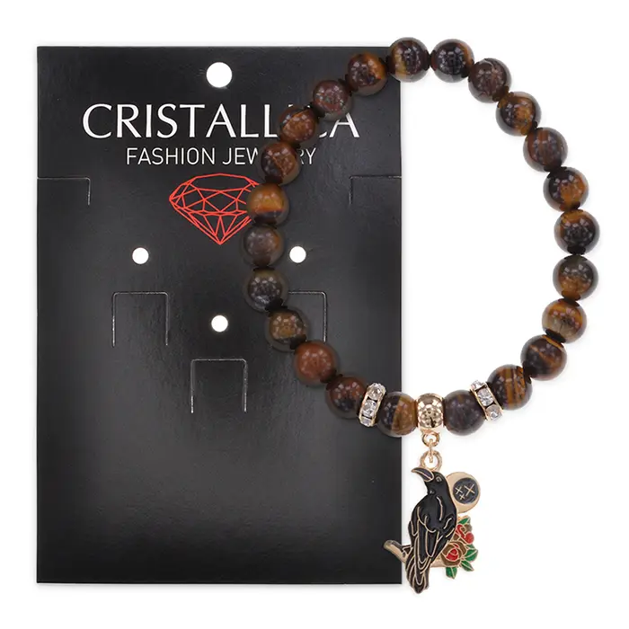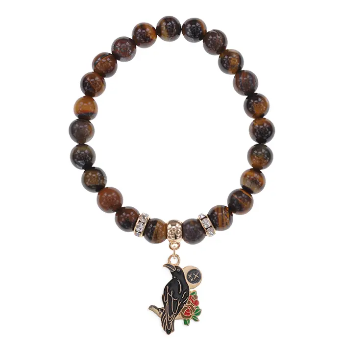 Браслет Ворон (интеллект и мудрость) нат.камень Тигровый глаз 8мм BS-CR-0199
