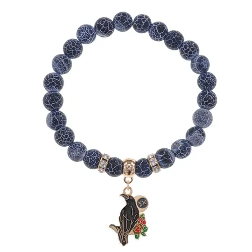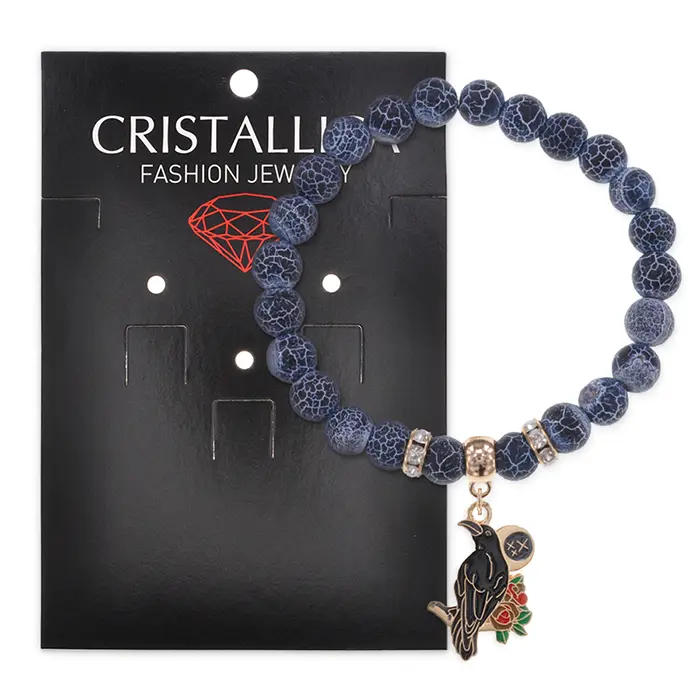 Браслет Ворон (Интеллект и Мудрость) нат.камень синий Африк. агат 8мм BS-CR-0207