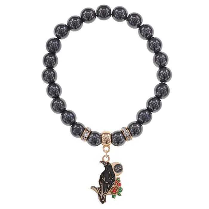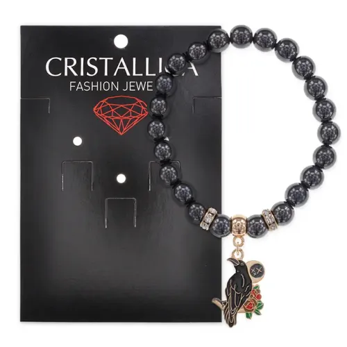 Браслет Ворон (интеллект и мудрость) синт.камень Гематит (не магнит.) 8мм BS-CR-0208