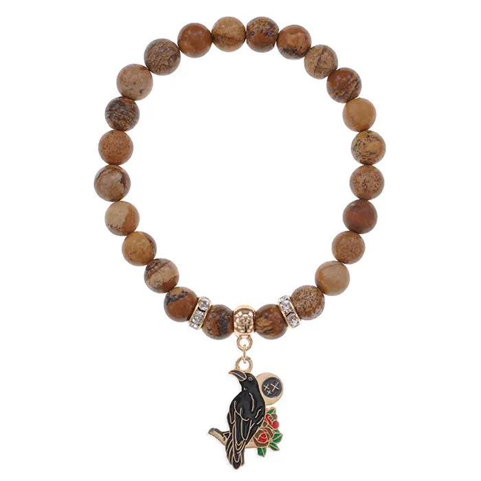 Браслет Ворон (интеллект и мудрость) нат.камень Песочная яшма 8мм BS-CR-0210