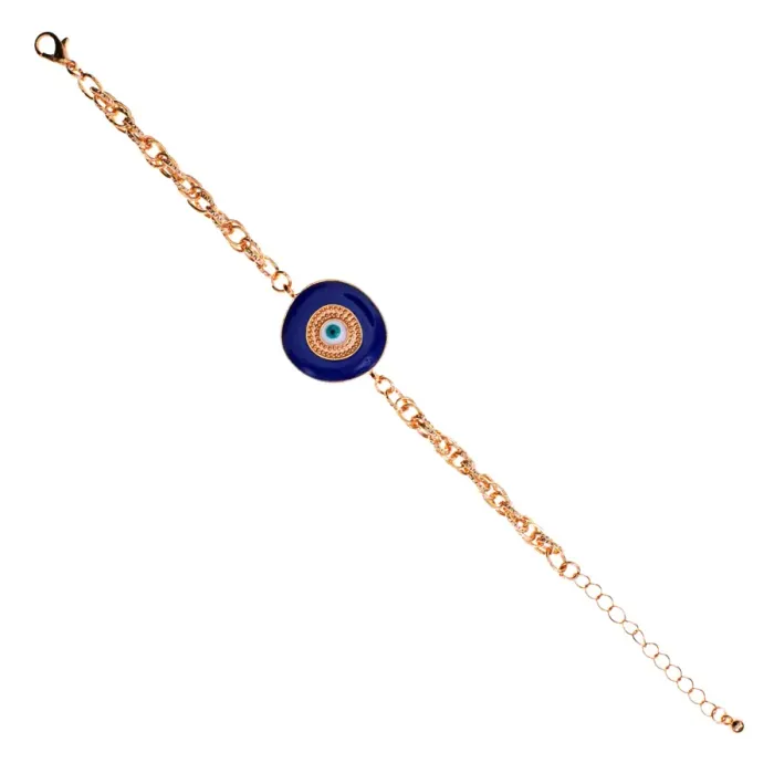 Браслет-сувенир из бижутерного сплава с покрытием под золото и эмалью, с коннектором в виде символа от сглаза.