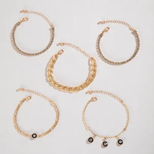 Набор из пяти браслетов-сувениров от сглаза из бижутерного сплава с декоративными стразами.
