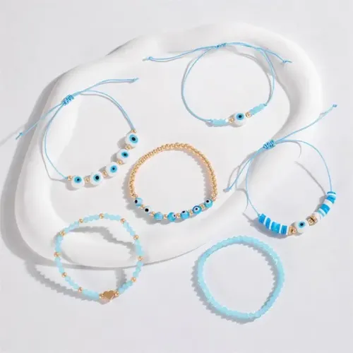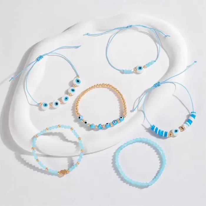 Размеры и комплектация: Набор из 6 браслетов: три стрейч-браслета и три браслета с регулируемой застёжкой.