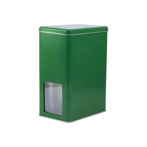 Банка для чая зеленая с окошком (д151мм х ш101мм х в211мм)
