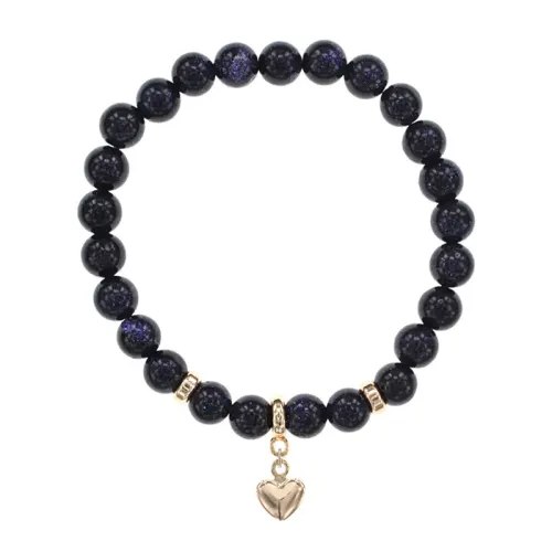 Стрейч-браслет из синтетического камня синий авантюрин с подвеской в виде сердца.