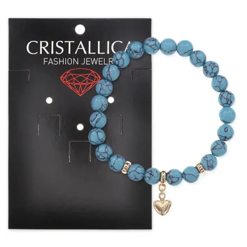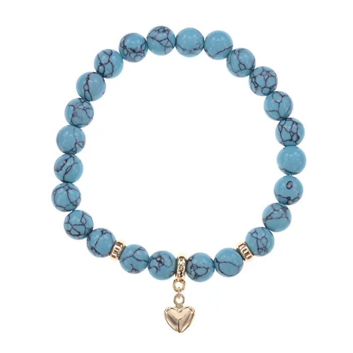 Браслет Сердце (Любовь и Семейное Счастье) синт.камень Бирюза 8мм BS-CR-0665