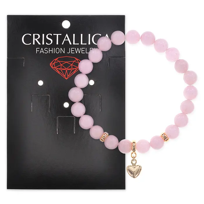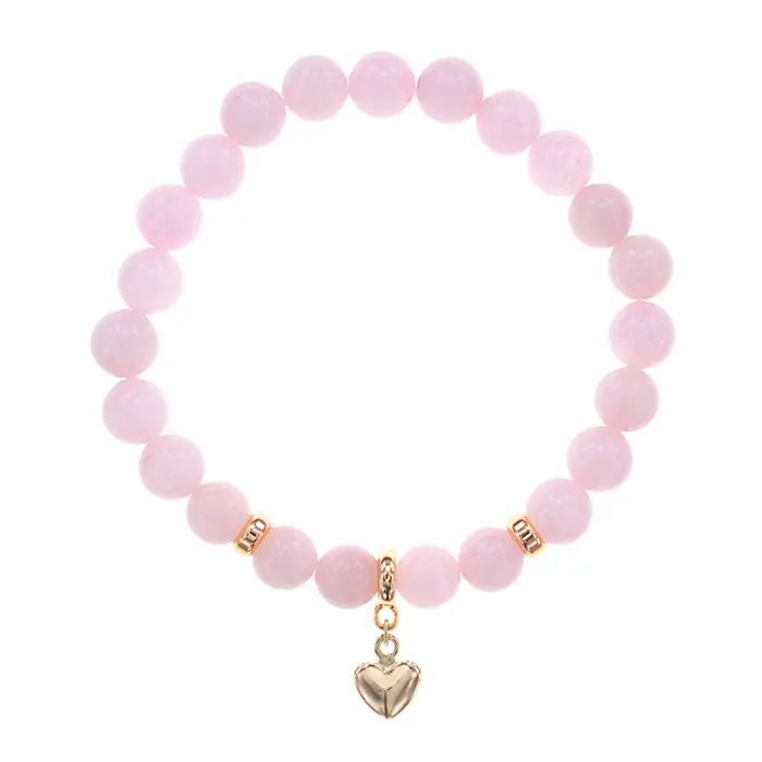 Браслет из натурального розового кварца с подвеской в виде сердца.