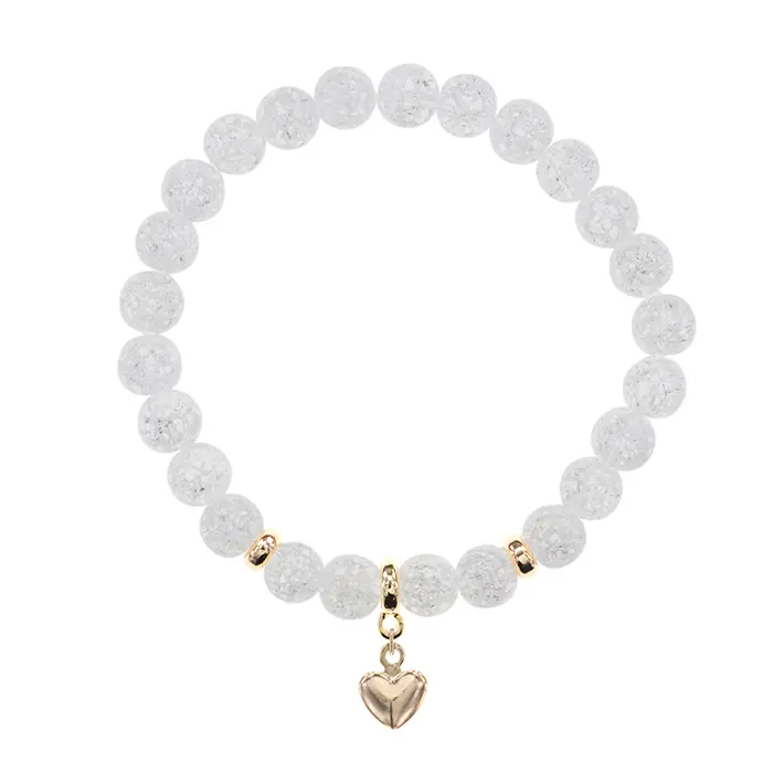 Стрейч-браслет с бусинами из сахарного кварца в форме сердца.