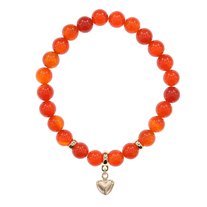 Стрейч-браслет из натурального сердолика с подвеской в виде сердца.
