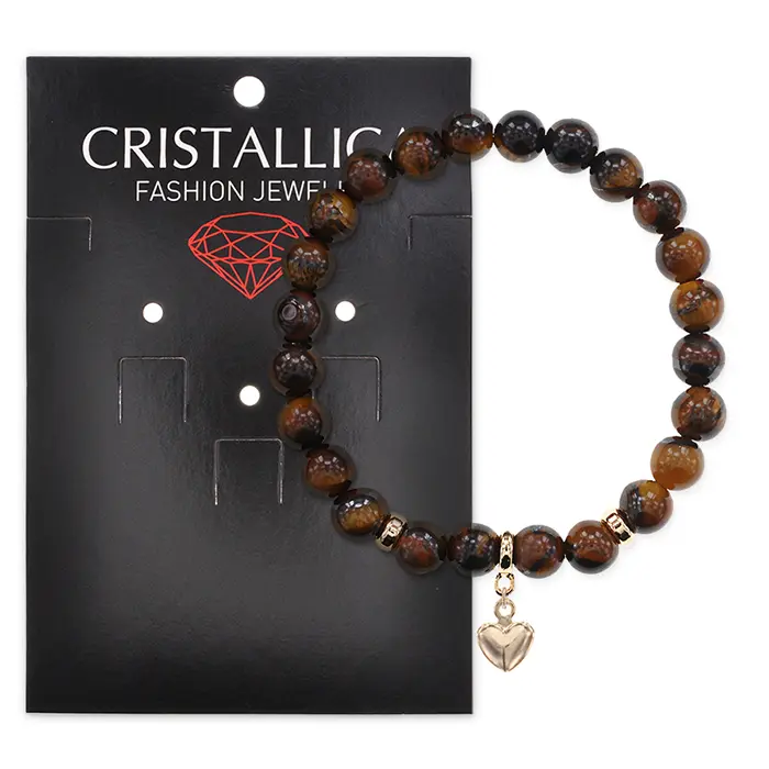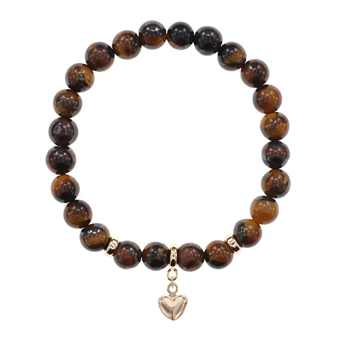 Браслет Сердце (Любовь и семейное счастье) нат.камень Тигровый глаз 8мм BS-CR-0679
