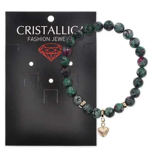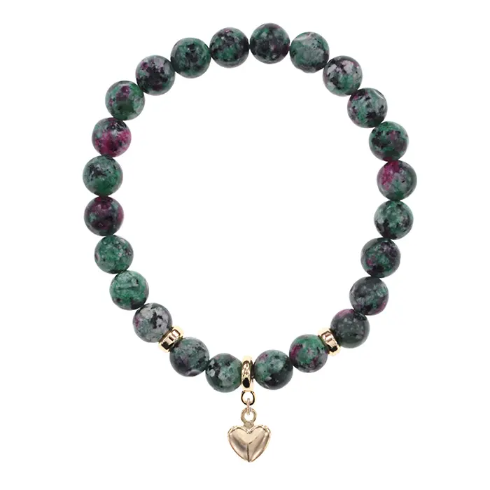 Стрейч-браслет из синтетического камня цоизит с подвеской в виде сердца.