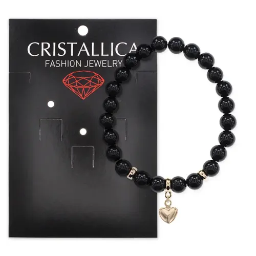 Браслет Сердце (Любовь и семейное счастье) нат.камень Черный агат 8мм BS-CR-0683