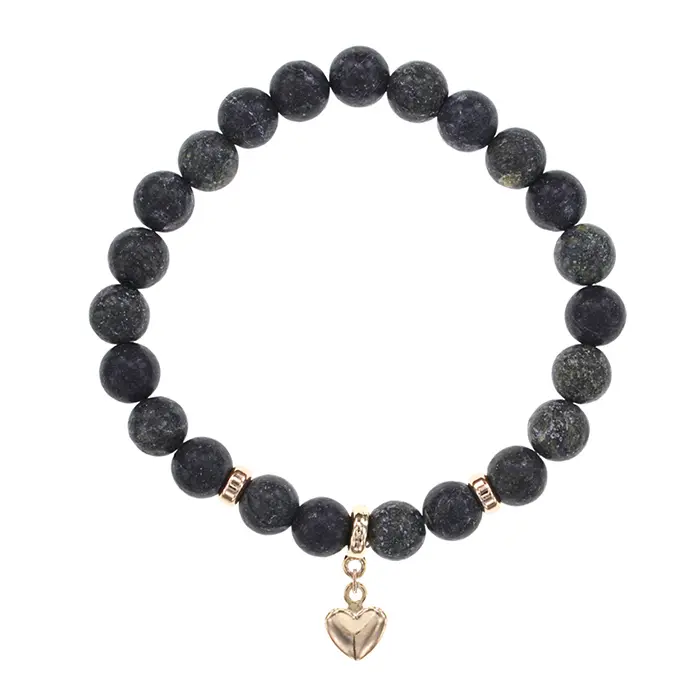 Стрейч-браслет из натурального камня змеевик с подвеской в виде сердца.