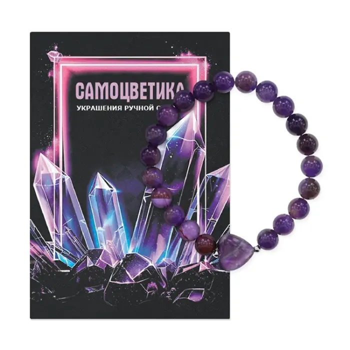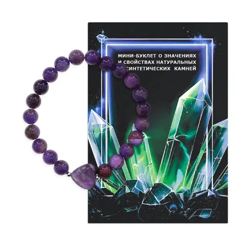 Стрейч-браслет из натурального аметиста с подвеской в форме сердца.