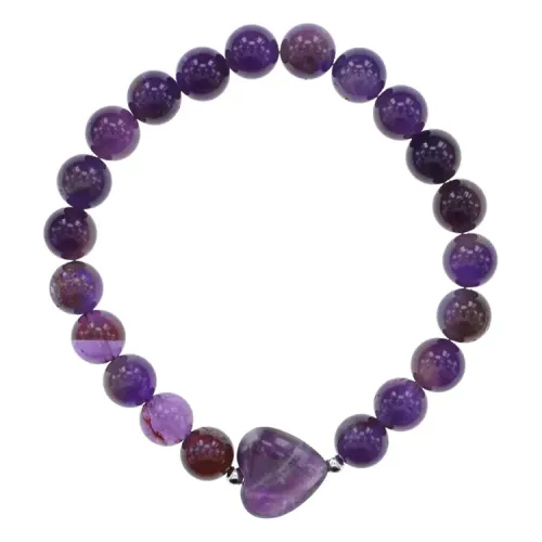 Браслет Сердце из нат.камня Аметист 8мм BS-SM-S-04