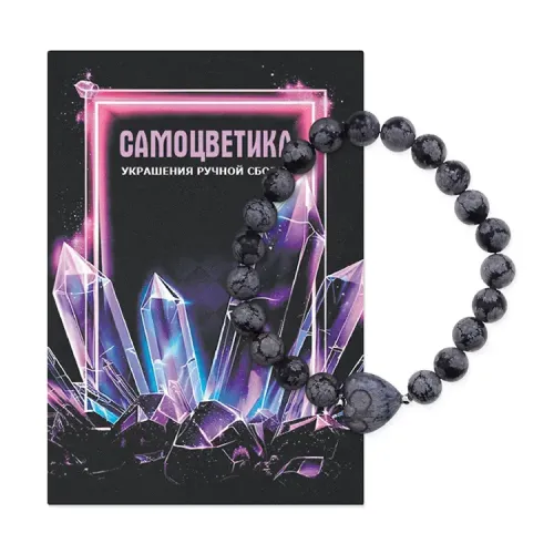 Материал и изготовление: Натуральный камень обсидиан (снежный). Бусины диаметром 8 мм. Изготовлен вручную.