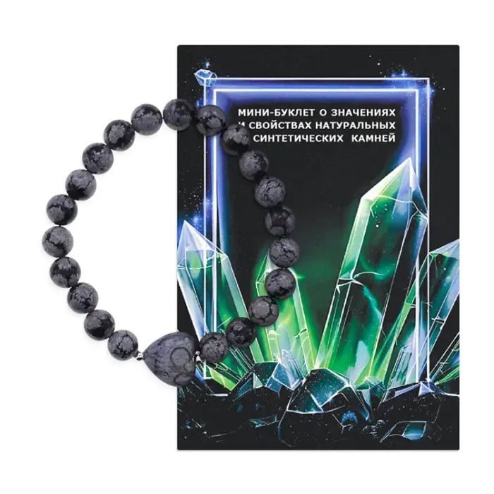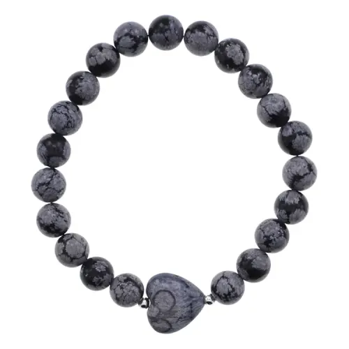 Браслет Сердце из нат.камня Обсидиан снежный 8мм BS-SM-S-14