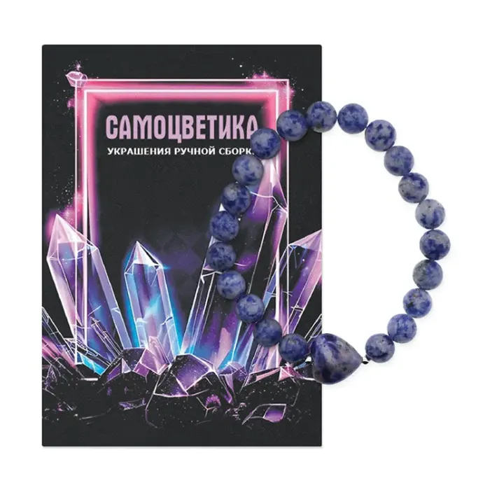 Стрейч-браслет ручной работы из натурального камня содалит с бусинами 8 мм и подвеской в форме сердца.