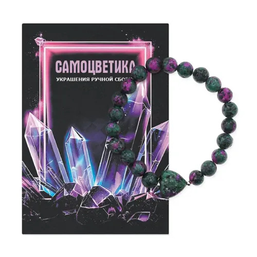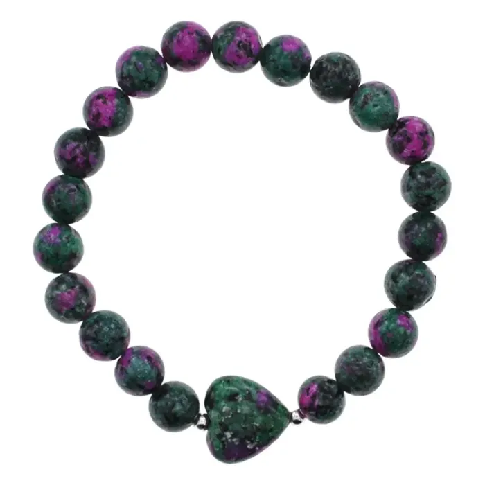 Браслет Сердце из синтетического камня Цоизит 8 мм BS-SM-S-22
