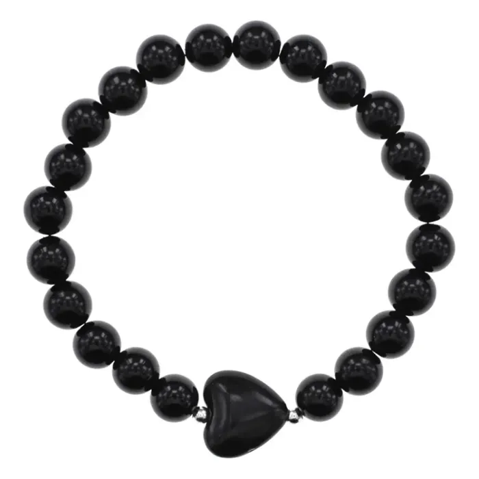 Браслет Сердце из нат.камня Черный агат 8мм BS-SM-S-23