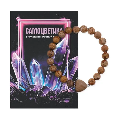 Стрейч-браслет из натуральной яшмы с подвеской в форме сердца.
