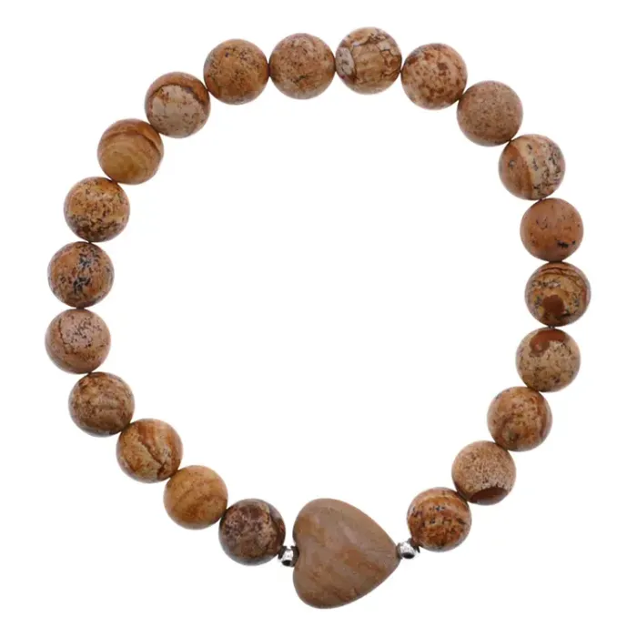Браслет Сердце из нат.камня Яшма песочная 8мм BS-SM-S-26