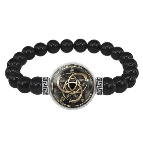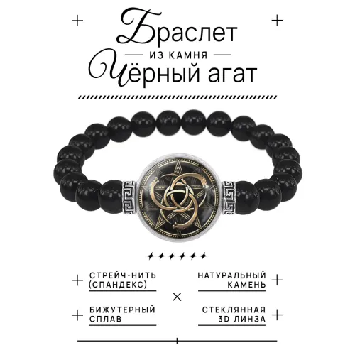 Размеры и комплектация: Диаметр бусин 8 мм, диаметр линзы с амулетом 20 мм. Внутренний диаметр браслета примерно 5.5 см.