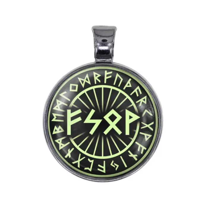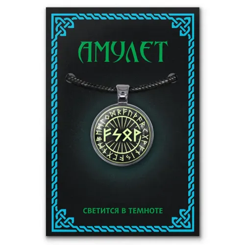 Светящийся амулет-кулон из бижутерного сплава с изображением рунической формулы.