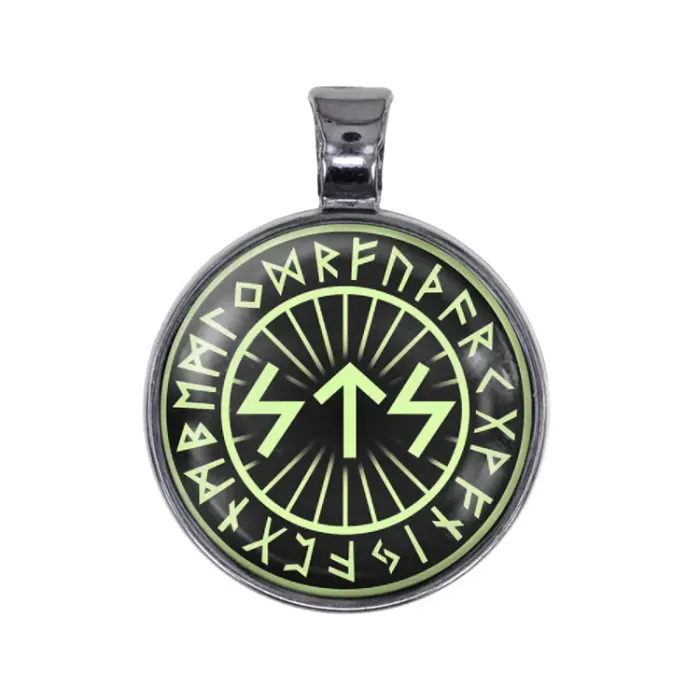 Сувенирный кулон-амулет со светящимся в темноте изображением. Изготовлен из бижутерного сплава с покрытием под сталь, изображение защищено выпуклой стеклянной линзой.