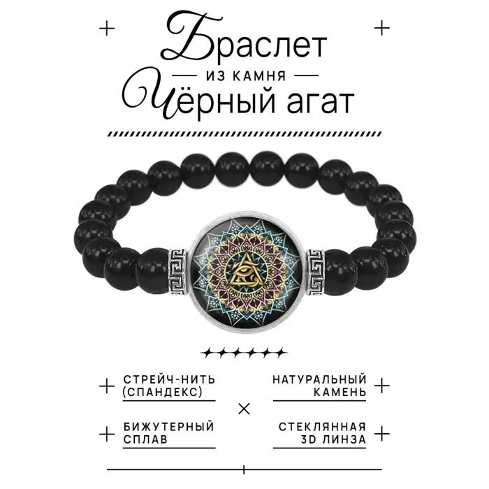 Браслет из черного агата Мандала Предвидения BSBA-132